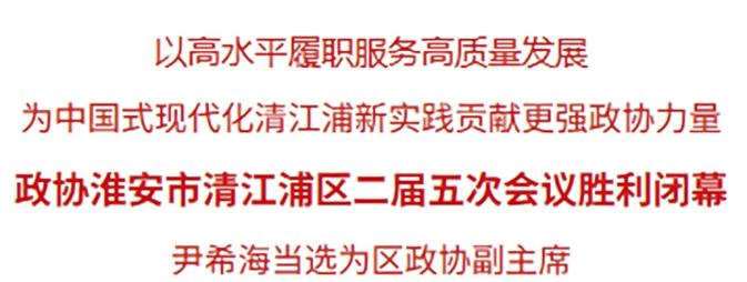 尹希海当选为政协淮安市清江浦区第二届委员会副主席,沈海波、唐辉当选为政协淮安市清江浦区第二届委员会常务委员会常务委员。