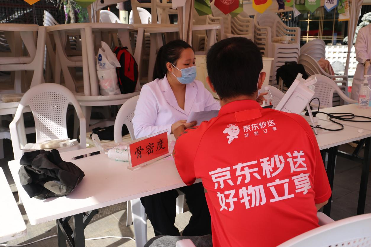在体检专区,来自江苏省疾控中心的医务人员紧密结合新业态劳动者的工作特点,量身定制了多项免费体检项目,涵盖血压、骨密度、CT、血常规、肿瘤标志物检测等,并现场提供专业的健康指导与建议,切实关注该群体的身心健康。